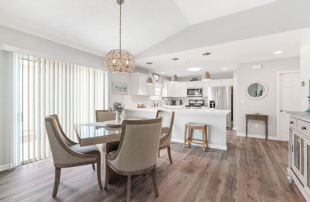 • Dining area with sliding glass doors to the side patio — perfect for grilling or al fresco dining